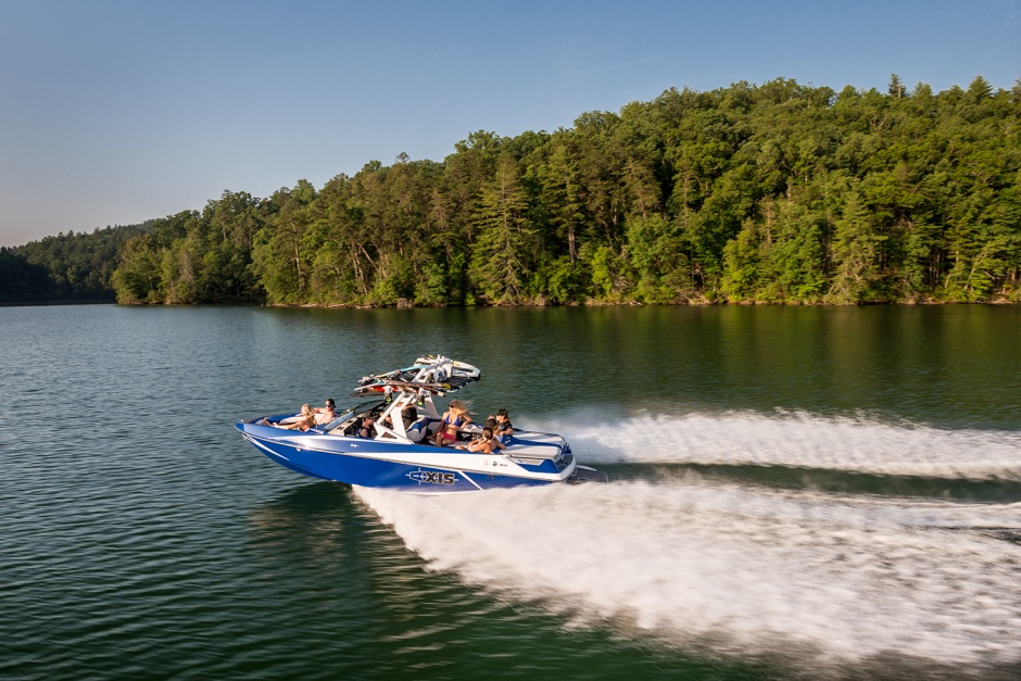 The P.S.P. starts with the Wake Plus hull design engineered for this T22 model. Combine this with wave engineering running surfaces and customised swim platforms. Then, for a bigger wake flip a switch to fill the Hard-Ballast system for wake-creating ballast. Get the fore and aft Plug'n'Play ballast option to add another 570 kgs. for the biggest wake you've ever seen, equip your Axis T22 with the Auto-Set Wedge hydrofoil. Drop the wedge in the water and instantly gain another 455 kgs of wake-generating water displacement.