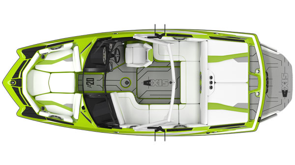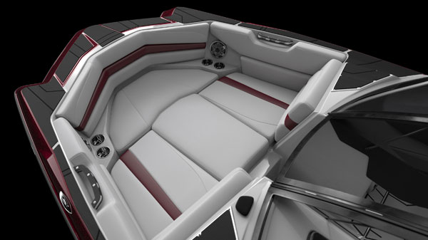 Our striking dash design with glowing white 3-in-1 gauges gives the cockpit a classic sporty look. There's more function with a new central touch screen that integrates menu navigation, Surf Gate control, speed control and more. A new panel of soft-key switches puts major controls at the driver's fingertips, and new helm and transom remotes for the audio system let the driver or passengers adjust the music.