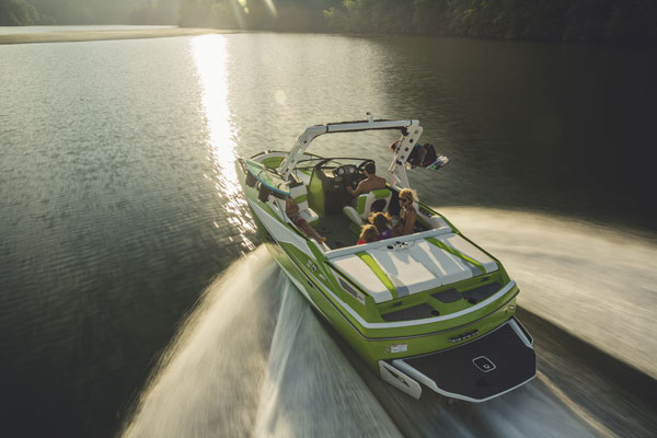 Nothing on the water packs as much punch into a 20-foot package as the Axis A20, and nothing can touch its value, either. With its Wake Plus hull and standard 409 foot-pounds of torque, the A20 comes ready to shred. It's easy to trailer and store, yet kicks up an massive wake, especially available with our Auto-Set Wedge & Power Wedge III. Add the hydraulic Surf Gate and you've got the best wave-making technology available today, and space an comfort for 11 crew onboard.