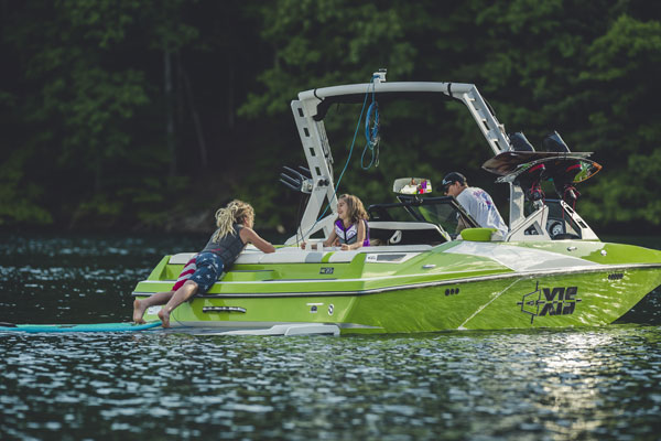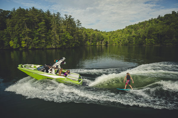 Wait until you see how easy it is to turn that wake into an endless, customisable wave for surfing. Engage the Wedge and then flip a switch to activate Surf Gate. That's it. The Surf Gate's high-speed hydraulic actuators let you quickly shift the wave from side to side for regular or goofy styles.