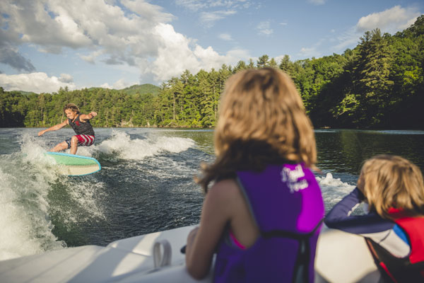 With the P.S.P. and Surf Gate, the driver can dial in the wakes and waves to make the perfect watersports playground for any rider, every time, and controllable from the Surf Band wrist remote on all Axis boats. Wearing the Surf Band, the rider can control the Surf Gate, speed and stereo volume right from the board.