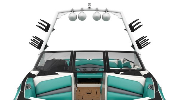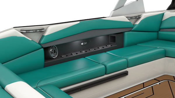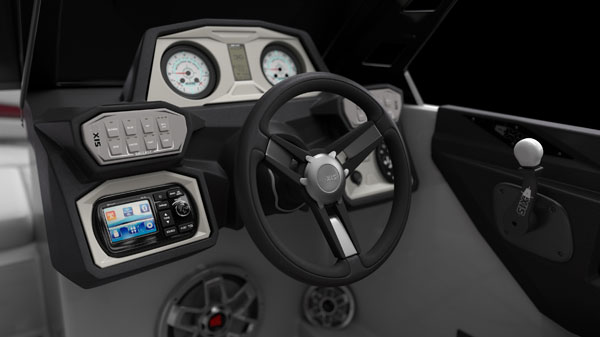 The striking dash design with glowing white 3-in-1 gauges gives the cockpit a classic sporty look. There's more function with the central touch screen that integrates menu navigation, Surf Gate control, speed control and more. The panel of soft-key switches puts major controls at the driver's fingertips, and helm and transom remotes for the audio system let the driver or passengers adjust the music.