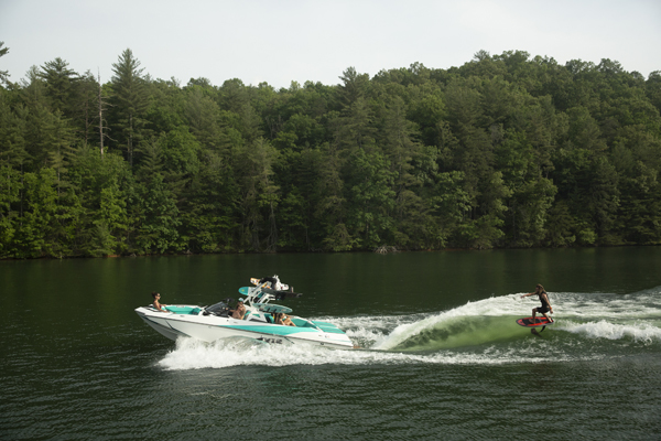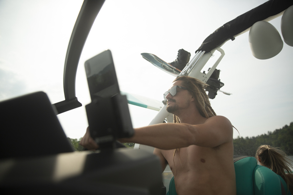With the P.S.P. and Surf Gate, the driver can dial in the wakes and waves to make the perfect watersports playground for any rider, every time. Wearing the Surf Band, the rider can control the Surf Gate, speed and stereo volume right from the board.
