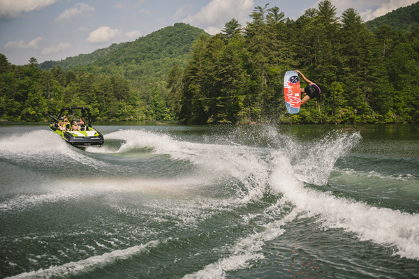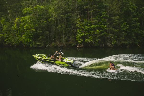 With the P.S.P. and Surf Gate, the driver can dial in the wakes and waves to make the perfect watersports playground for any rider, every time. Wearing the Surf Band, the rider can control the Surf Gate, speed and stereo volume right from the board.