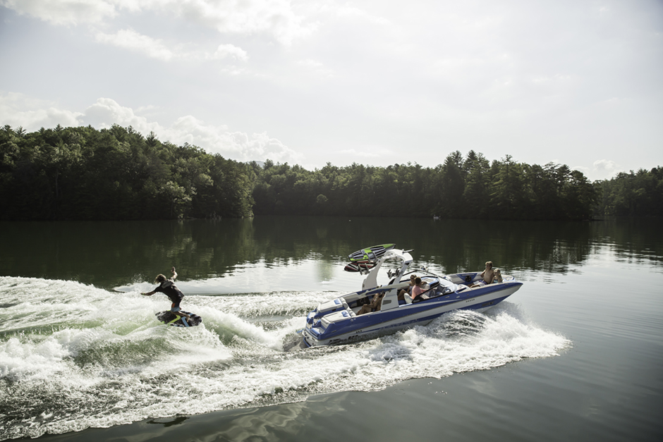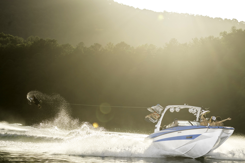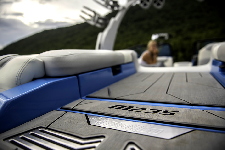Unprecedented luxury and performance. A perfect blend of beauty and power. This is the new M235, the new alpha, the ultimate expression of the state of the art. For this extraordinary boat, our design, engineering, and athlete teams worked hand in hand to deliver a seamless alignment of power, luxury, innovation, and performance, making the M235 without equal on the water. Coming standard on the M235 is everything; this boat is built to be fully loaded, an instant classic for the uncompromising customer who wants nothing but the best of the best. The result is a once-in-a-lifetime boat, whether it’s at the dock or pulling the world’s best wakeboarders and -surfers.