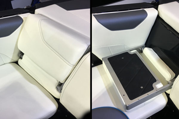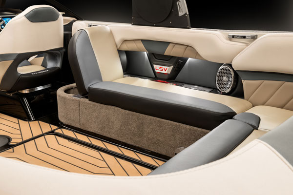 Located midship on both port and stbd, flip-up the Wake View Seating cushion to create the most comfortable reclining viewing position to watch the action taking place on the water behind your Malibu.
