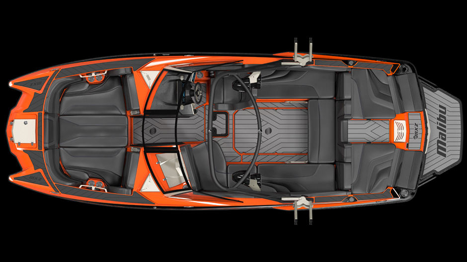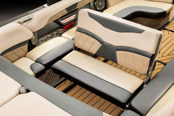 The seating aboard the 22 MXZ is as outsized as the wake is, with enough room for 15 people. That means no one has to be left behind. The seats are plush in both the bow and main cockpit area, where a rear-facing backrest to port provides the perfect area for a spotter. Malibu offers cutting-edge color schemes that will look cool to even the most jaded millennial in the family.