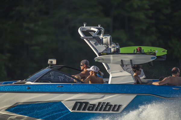 On both towers, you'll find Malibu's renowned attention to detail in every part. Our aerospace-grade anodised aluminium swivel board racks are corrosion-resistant and ratchet down with the slightest tug on a single lever, securing any board. Wakeboarding Magazine called these "the best board racks ever."