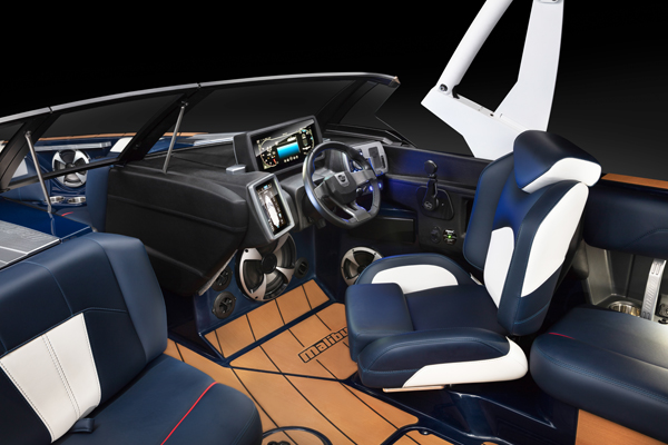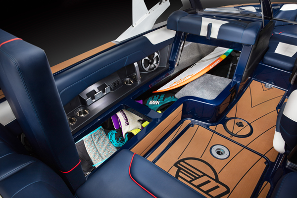 The ISP’s Quad Hard-Tank Ballast system and Malibu's Power Wedge III (the third generation of our patented hydrofoil) lets you add up to 1,600 kgs of wake-creating ballast at the tap of your finger on one of the dual touch-screens forming our Command Center.