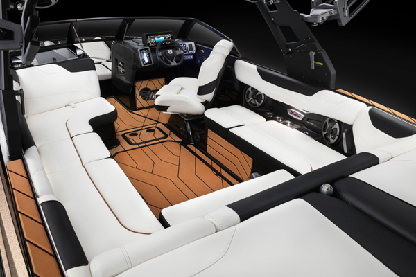 The ISP’s Quad Hard-Tank Ballast system and Malibu’s Power Wedge III (the third-generation of our award winning patented hydrofoil) lets you add up to 1,920 kgs of wake-creating ballast at the tap of your finger on one of the dual touch-screens forming our Command Center.